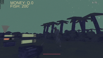 These creatures are hungry for fish and, possibly, some human flesh if approached closely. The player's task is to defend against these creatures using basic weaponry throughout the night. After successfully completing this cycle for one week, the fish are ready to be sold, and the player earns money based on the number of surviving fish. The ultimate goal is to sustain the fish farm and earn enough money since, at the end of the month, the government will impose taxes. Failure to pay these bills results in a game over.